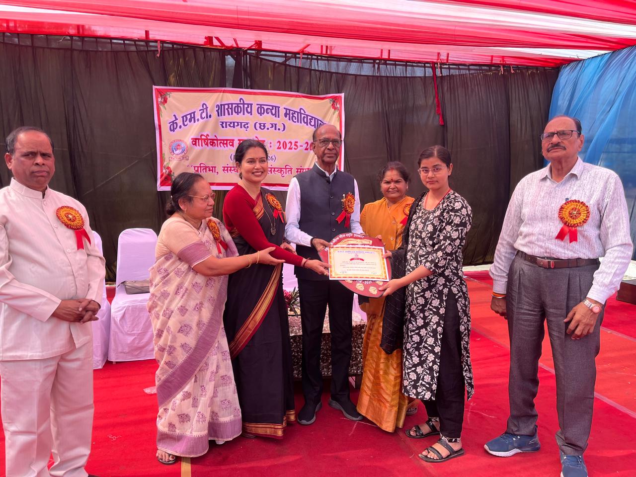 वार्षिक उत्सव के मुख्य अतिथि पूर्व विधायक विजयअग्रवाल ने शैक्षणिक खेलकूद और सांस्कृतिक गतिविधियों एवं फाइनल ईयर में उत्कृष्ट प्रदर्शन करने वाले मेधावी छात्राओं को शील्ड एवं प्रमाण पत्र प्रदान कर सम्मानित कर सभी छात्रों को उनके उज्जवल भविष्य की शुभकामनाएं दी एवं सभी छात्राओं एवं महाविद्यालय परिवार को सफल आयोजन हेतु हार्दिक बधाई एवं शुभकामनाएं दिए। उन्होंने छात्राओं को संबोधित करते हुए कहा जीवन में सफलता के लिए शिक्षा एवं अनुशासन के महत्व पर संवाद कर उन्हें प्रोत्साहित किया और विद्यार्थियों को अनुशासन परिश्रम और संस्कारों को जीवन में अपनाने की सलाह दी एवं विशिष्ट अतिथि श्रीमती पूनम सोलंकी व श्रीमति शीला तिवारी ने भी कार्यक्रम को संबोधित किया।
