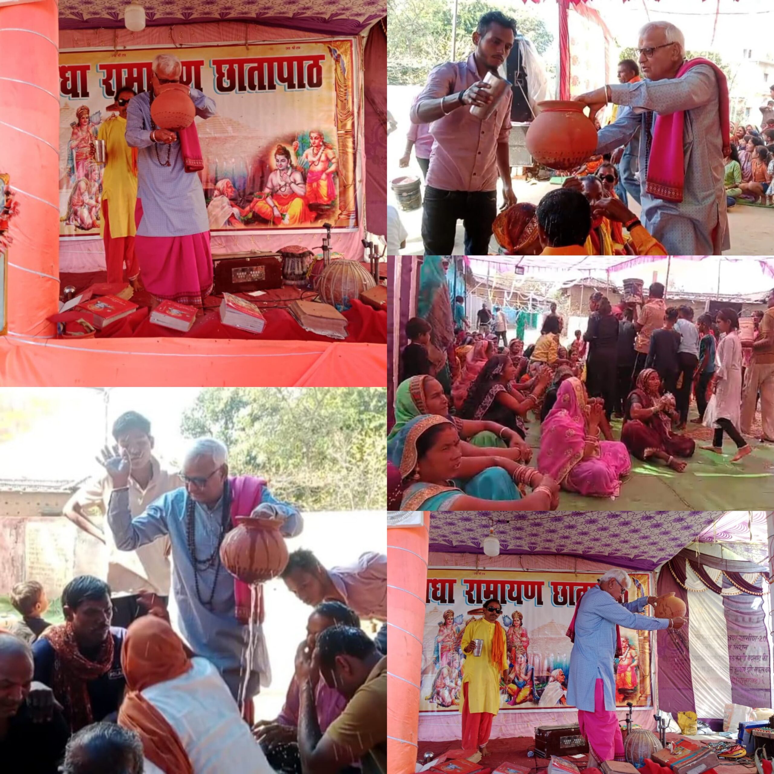 कोरबा- कोरबा जिले के करतला विकासखण्ड अंतर्गत ग्राम छातापाठ में हर वर्ष की परंपरा के अनुरूप इस वर्ष भी अखण्ड नवधा रामायण का भव्य एवं श्रद्धापूर्ण आयोजन किया गया। 16 फरवरी से समस्त ग्रामवासियों के सहयोग से प्रारंभ हुए इस धार्मिक अनुष्ठान का विधिवत समापन आज हवन-पूजन एवं सहस्त्र धारा के साथ सम्पन्न हुआ। समापन अवसर पर पूरे गांव में भक्तिमय वातावरण देखने को मिला और श्रद्धालुओं की भारी उपस्थिति रही।