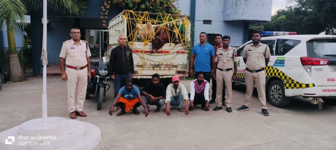 सरायपाली में अवैध मवेशी परिवहन करते एक पिकअप जप्त चार आरोपी गिरफ्तार,