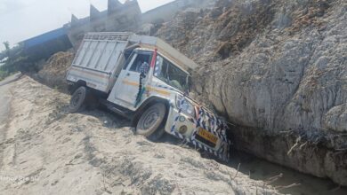 सक्ती : सड़क किनारे पलटी तेज रफ्तार पिकप, चालक को आई मामूली चोट