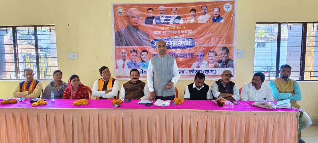 कोरबा । छत्तीसगढ़ राज्य चर्म शिल्पकार विकास बोर्ड के अध्यक्ष (राज्य मंत्री दर्जा) श्री ध्रुव कुमार मिर्धा अपने रामपुर विधानसभा प्रवास के दौरान बरपाली पहुंचे। यहाँ उन्होंने भारत रत्न व पूर्व प्रधानमंत्री श्रद्धेय अटल बिहारी वाजपेयी जी की स्मृति में आयोजित ‘अटल स्मृति संगोष्ठी’ में मुख्य अतिथि के रूप में शिरकत की।